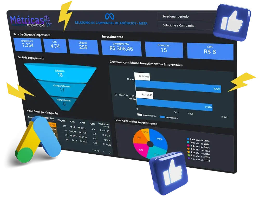 Integrado com Facebook ADS e Google ADS, te trazendo maior poder de análise e segurança na hora de analisar suas campanhas de anuncios.